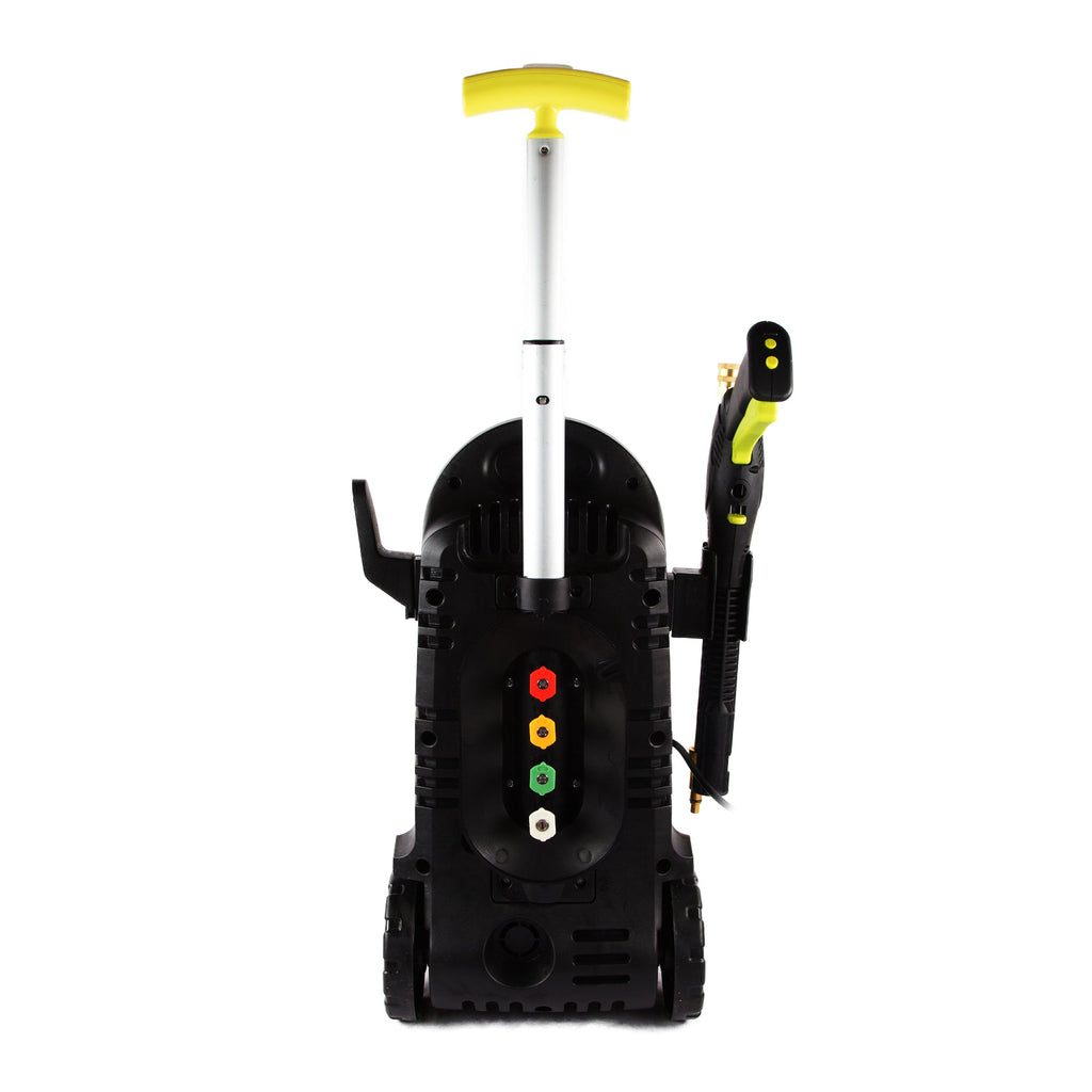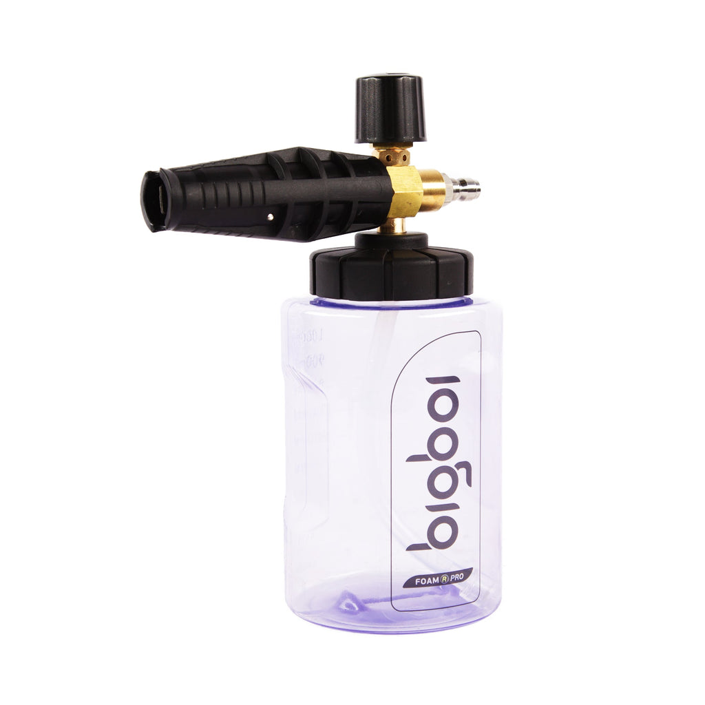 Allt som ingår i paketet är av hög kvalitet. WashR Flo har en kolborstfri motor i aluminium med automatisk start/stopp för att förhindra överhettning. Motorn ger ett verkligt vattentryck på 180 bar/420 liter per timme. Detta tryck säkerställer att du har tillräckligt med tryck för att skölja av bilen utan att skada lacken, samtidigt som det ger tillräckligt tryck för att skapa ett bra skum med den medföljande skumlansen. En skumlans med tydlig flaska och stor öppning medföljer också.