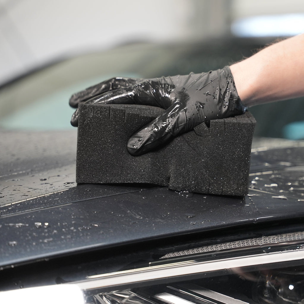 Många tänker nog: "Men ni brukar ju rekommendera mikrofibertvättvantar för biltvätt?" Och ja, det stämmer – mikrofibertvättvantar har fortfarande sin plats. Men Rinseless Sponge är tillverkad av ett material och i en design som gör att den inte repar fordonet om den används på rätt sätt. Faktum är att vi skulle säga att det på vissa fordon, särskilt de med känslig klarlack, kan vara ännu säkrare att använda denna sköljfria tvättsvamp än många andra alternativ.