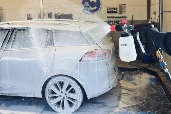 Skumlansen är ett viktigt verktyg och kan utgöra en stor del av din tvättprocess. Den producerar det välkända tjocka lagret skum. Det handlar inte bara om att se bra ut. Syftet med skummet är att lösa upp, lyfta och avlägsna smuts från lacken. På så sätt får du bort så mycket smuts som möjligt från lacken innan du går igång och tvättar bilen för hand.