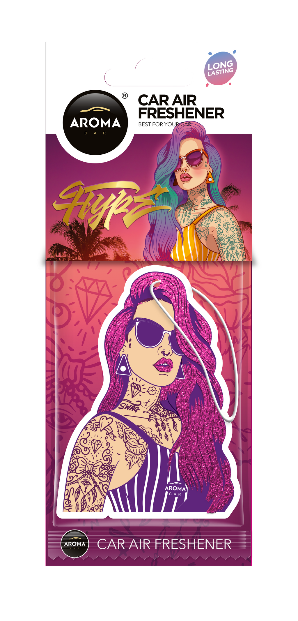 Kæk duftfrisker for fans af hiphop, tatoveringer og afslappet livsstil. Fedt design med en frisk duft. Hænges ved bakspejl. Har en holdbarhed på op til 30 dage.