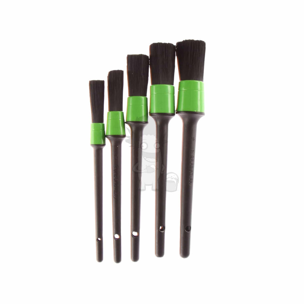 Med vores Detailing Pensel Sæt får du hele 5 kemiresistente detailing pensler. Børstehårene er lavet af tynde, bløde nylonfibre. De er derfor ideelle at bruge til både rengøring af fælge, motorrum, dørfalser - eller på hårdt plast og trim i dit interiør. Hele penslen er lavet uden metal og har ingen overflader, der kan ridse.
