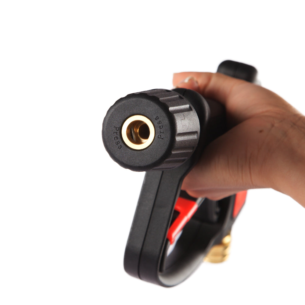 Munstycket passar på nosen av handtaget som är vänd mot bilen och fungerar med en snabbkoppling. Som är. Alla tillbehör som du använder i framtiden måste stödja denna anslutning.