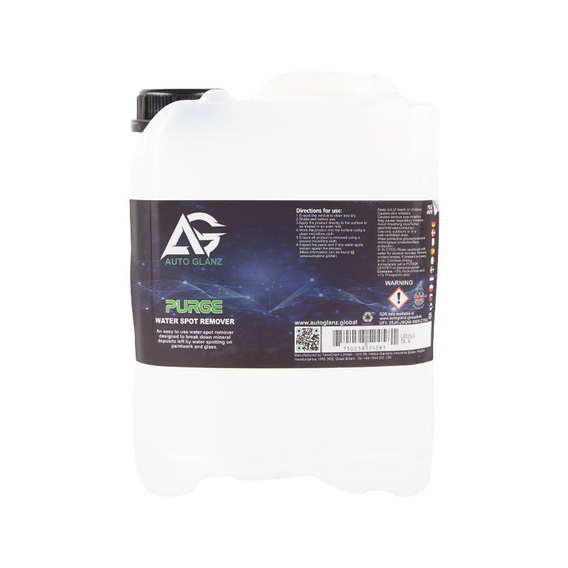 Purge är en extremt effektiv "kalkfläckslösare" som också kan användas förebyggande för att rengöra lacken från mineralansamlingar som kan försämra lackens glans och även minska din lackförseglings självrengörande effekt. Kan användas på lack, plast och glas.