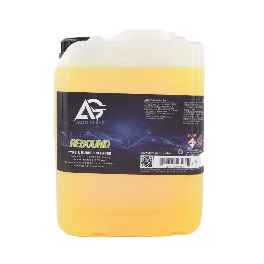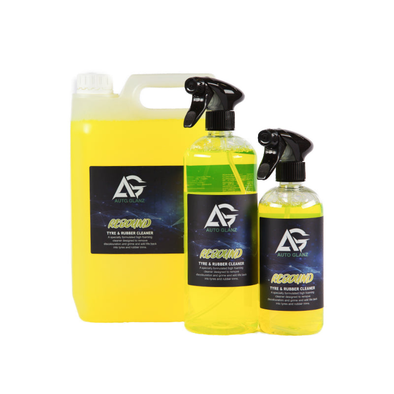 Rebound är en dedikerad produkt utvecklad för att rengöra och ge ett friskt utseende till dina däcksidor. Den tar enkelt bort smuts och skräp och gammal däckglans. Dessutom kan den också ta bort den bruna missfärgning som däcket kan få över tid. Produkten är ett "måste ha" om du bryr dig om att dina däcksidor ser lika skarpa ut som resten av bilen. Den högt skummande formeln gör den lätt att arbeta med, tillsammans med antingen en detaljpensil eller en stiv däckborste.