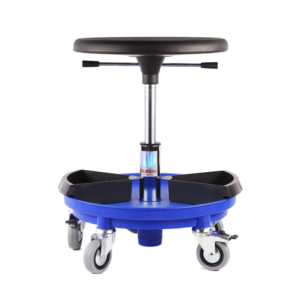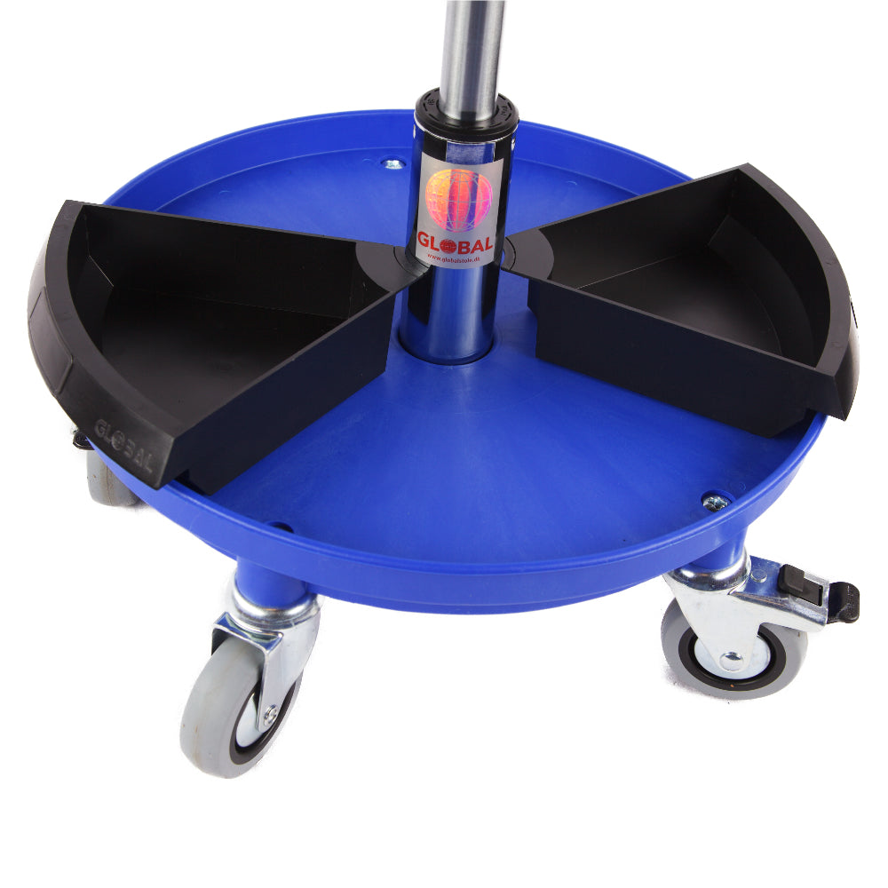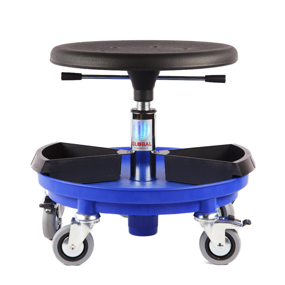 Behöver du en bra plats att sitta på när du polerar eller sköter fälgar? Då ska du skaffa vår danskproducerade Bilskötselstol. Stolen kan justeras från en sitthöjd på 37-50 cm. Och när du har hittat rätt höjd sitter du verkligen bekvämt på setet i PU-skum. Stolen är utrustad med 5 hjul som rullar mycket bra. Och med bromsar på 2 av hjulen kan du placera stolen tillfälligt (t.ex. på en lutande uppfart) utan att den rullar iväg.