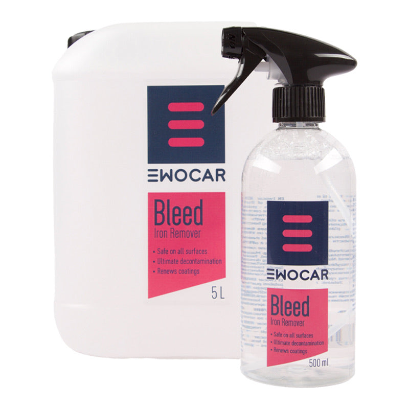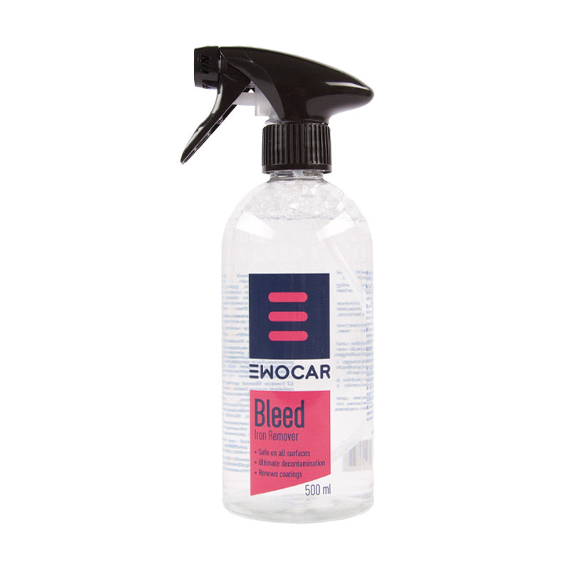 Med Bleed från Ewocar får du en kombinerad flygrost- och fälgbeskyddar i en produkt. Produkten är utvecklad för att ta bort metallpartiklar från bromsdamm och smuts från fälgarna samt för att rengöra lacken från flygrost. Det betyder att utöver att du normalt tvättar din Ewocar förseglade bil med en schampo, används Bleed för underhåll. Samtidigt innehåller den gott om smörjmedel, så det kan användas som glidmedel för Ewocars claytowel. På så sätt kan du mer intensivt men ändå otroligt säkert ta bort flygrost på lacken. Produkten är naturligtvis säker att använda för att rengöra dina Ewocar förseglade ytor, precis som den kan användas på plast, krom, glas utan att orsaka problem.