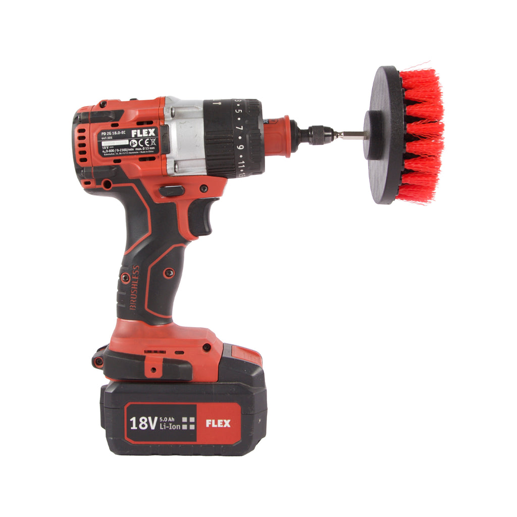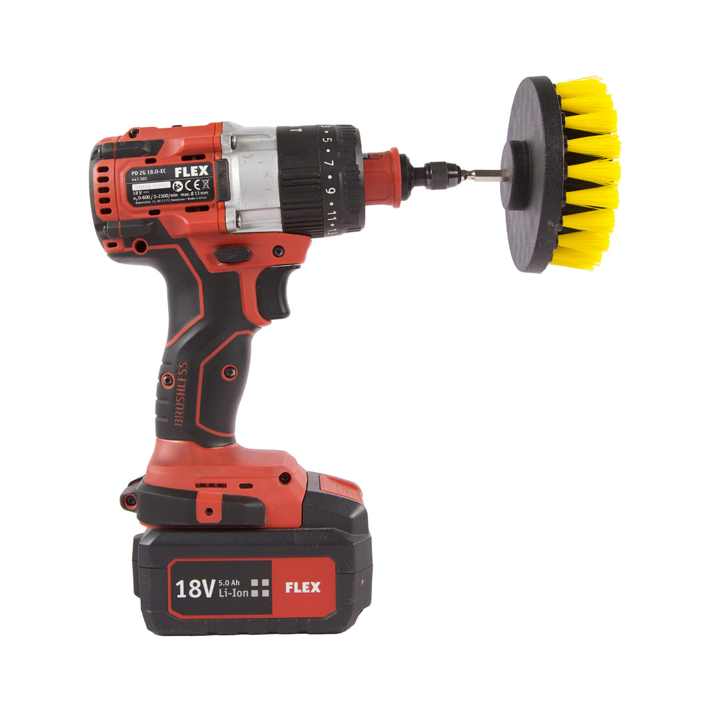 Med Koch Chemie Drill Brush Set får du 3 olika stora borsthuvuden som du kan montera på din borr/borrmaskin. Borstarnas kan väljas med fibrer i hård eller mellanstark kemikalieresistent nylonfibrer. De hårda borsterna ger god skurkraft för rengöring av däcksidor, gummimattor och andra mycket smutsiga ytor. De mellanstarka borsterna är lämpliga för mattor, säten, himlar samt övriga textilbeklädd ytor. Oavsett vilken hårdhet du väljer får du en borste på 50, 100 och 120 mm i diameter.