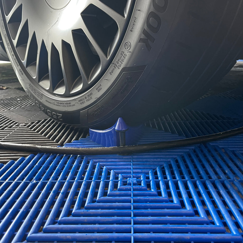 1. Placera en Nordic Detailing Supplies Hose Guard under varje däck, nära den yttre kanten, i en diagonal vinkel för optimal stabilitet.