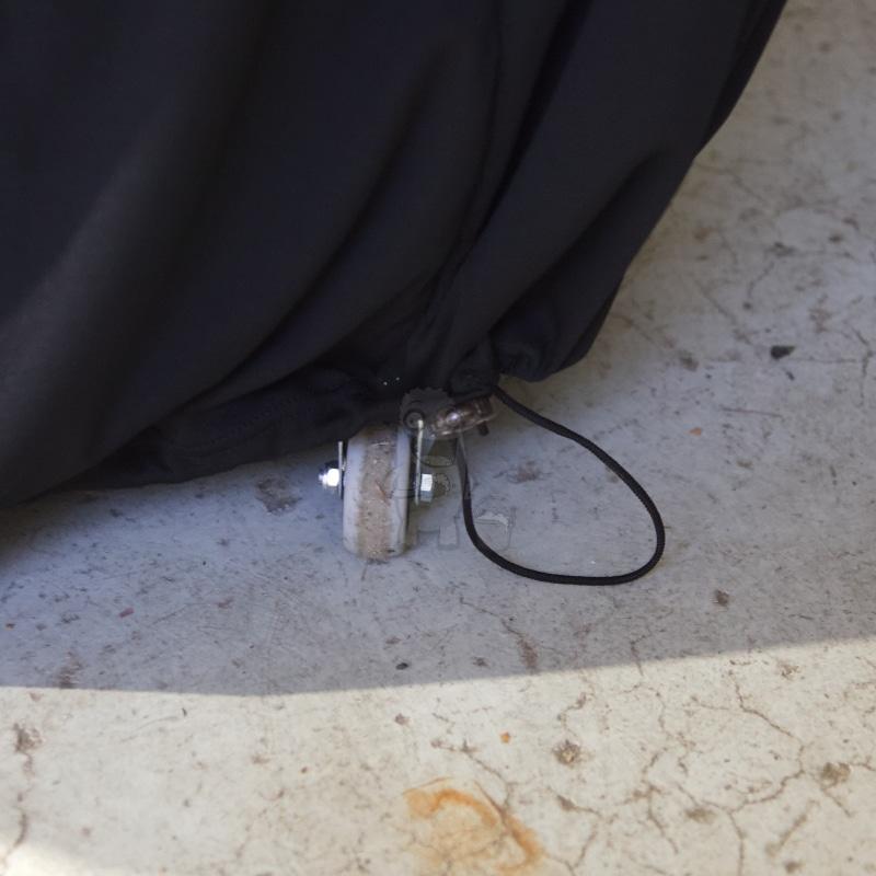 Och så kanske några tycker att det är lite synd att täcka in det snygga rullbordet med ett cover? Men helt ärligt tycker vi faktiskt att det ser ganska snyggt ut. För coveret är gjort i ett fint tunt tygmaterial i god kvalitet (det som drar över bilar i showrooms). Så det är faktiskt inte dumt att ha stående, täckt!