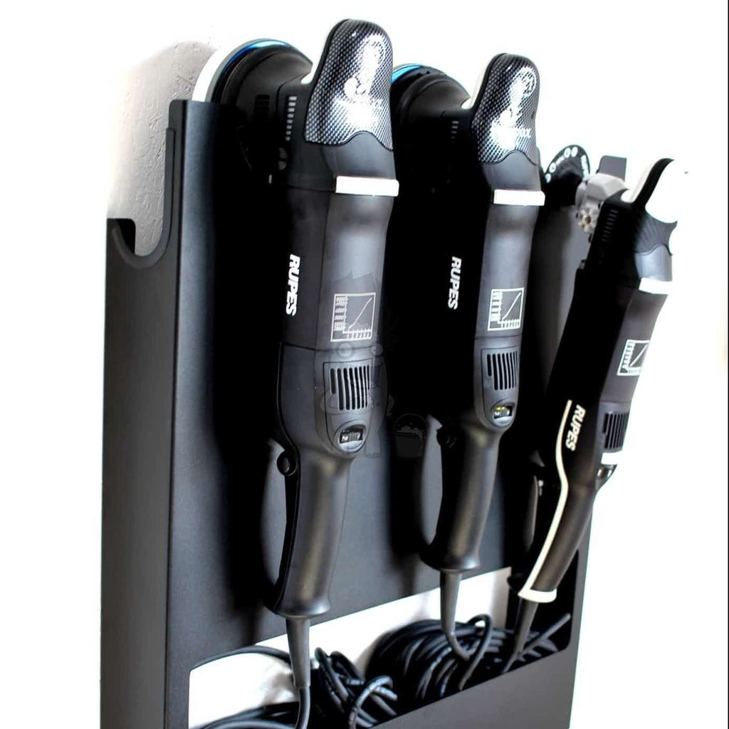 Oavsett om du har 3-5 poleringsmaskiner – eller planerar att skaffa fler, är denna hållare perfekt för att organisera dina maskiner i EN hållare. Tillverkad i stål som är exakt skuret och böjt, sedan pulverlackerat både på in- och utsidan – får du denna massiva hållare. Ser fantastisk ut i vilket garage eller verkstad som helst!