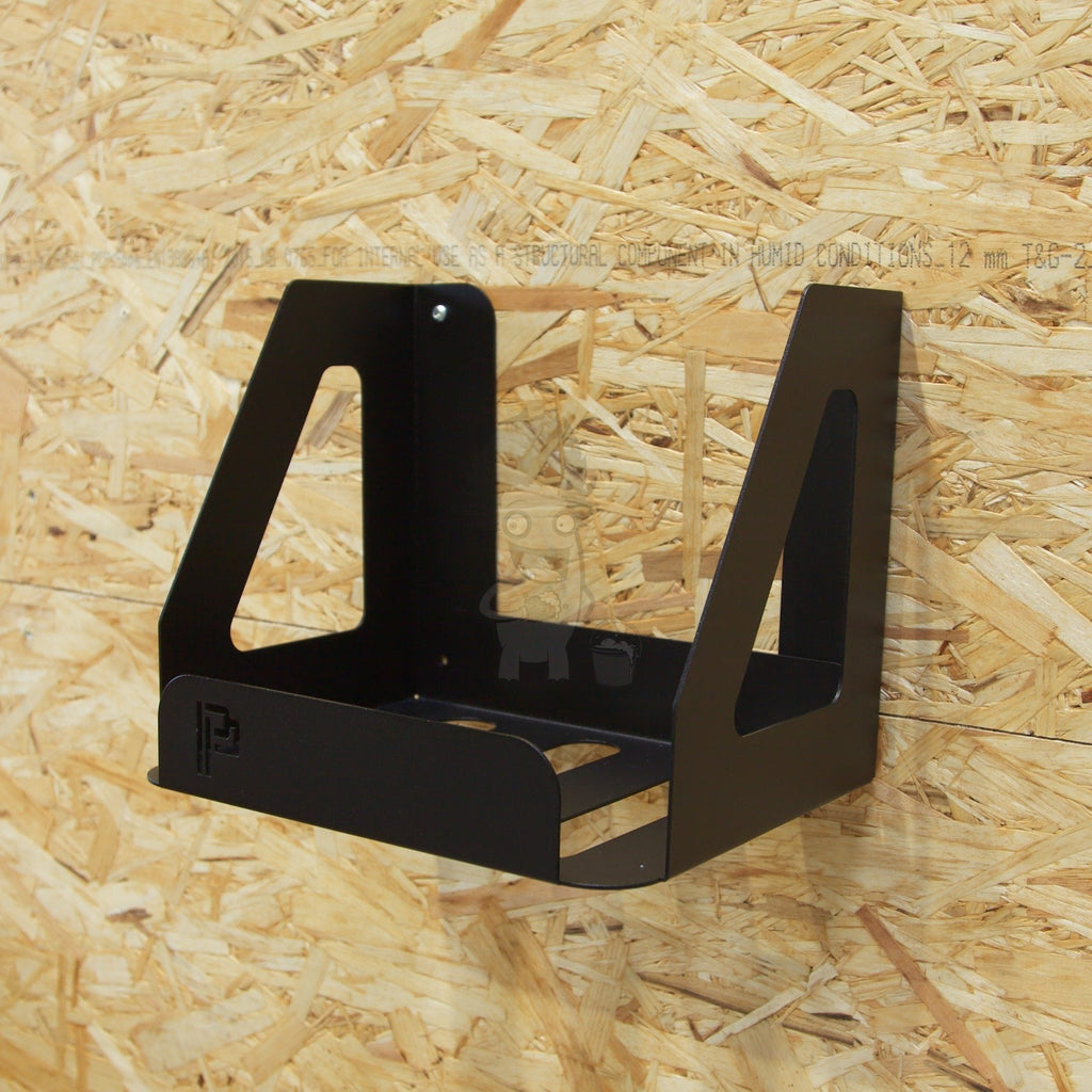 Med denna smarta pulverlackerad hylla kan du placera din ofta använda 4/5 liters dunk snyggt organiserad på väggen. Hyllan har förborrade 4 hål för montering, så allt du behöver göra är att hitta några bra skruvar och rawplugs - för hyllan kan bära upp till 30 kg!